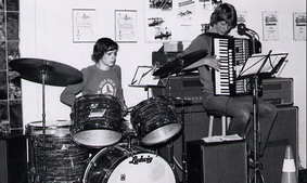 auch noch tanzbeinschwingende Töne aus seinem Akkordeon zu locken. Mit Dietmar Hagemeyer als "Drummer von Weltformat" und zugleich Schulkamerad an der Seite wurde eine Tanzkapelle
